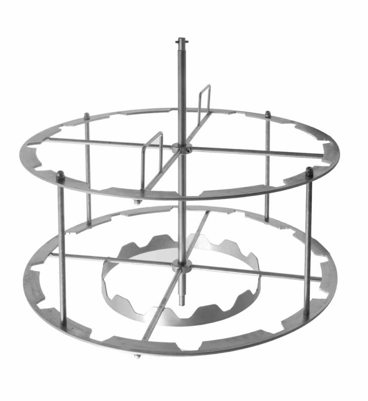 - De radiale slingerkorf kan eenvoudig worden omgebouwd naar een tangentiële korf door additioneel vier inhaakroosters voor tangentiële werking Art. nr. 7761 te plaatsen. Daarmee kunnen vier grote ramen tot 30 cm hoogte worden geslingerd. In dat geval kan een inhaakzak voor ontdekkingswas Art. nr. 7758 in de korf gehangen worden, zodat de honing uit de wasdeksels kan wegvloeien.