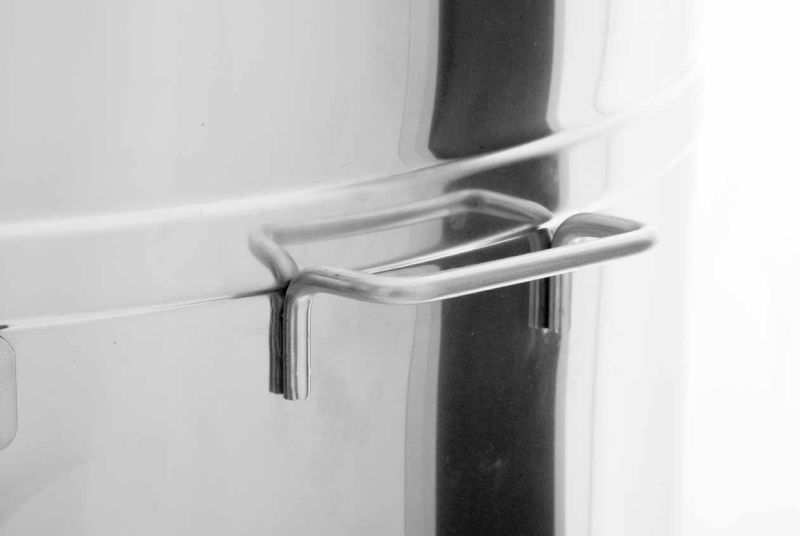 - Bodem: naadloos gelast en naar de knijpkraan toe hellend; knijpkraan op het laagst mogelijke punt vastgelast