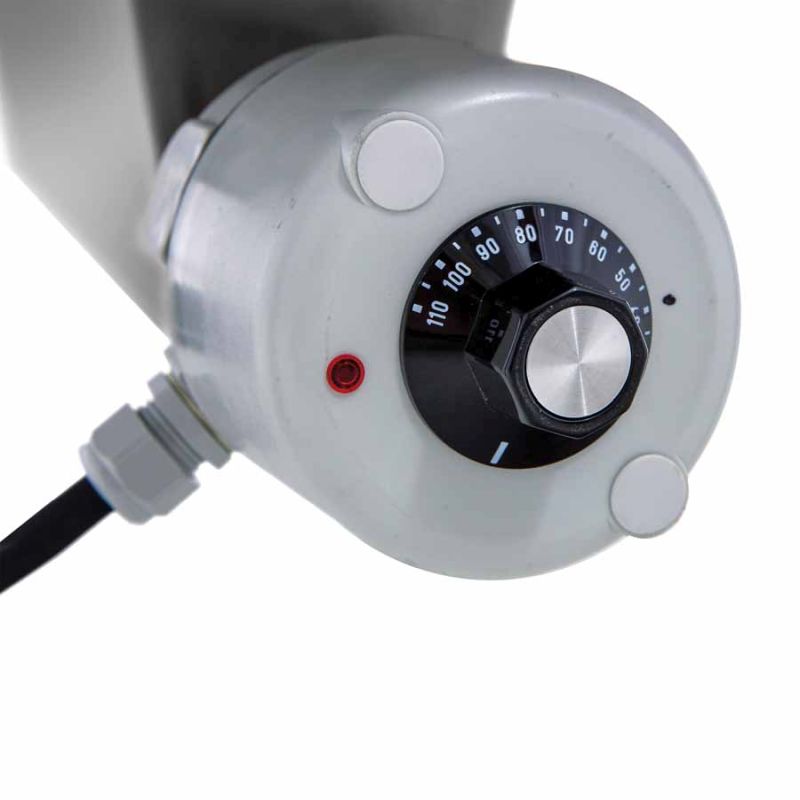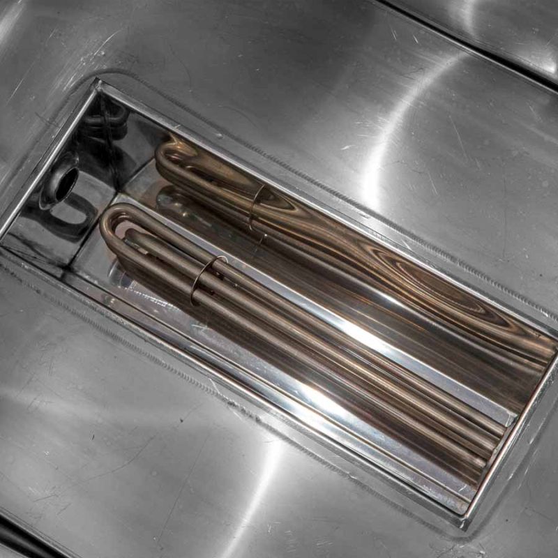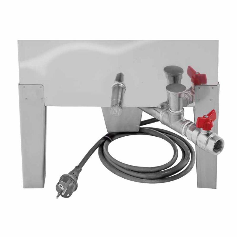 - Dompelbuisverwarming 3 kW/230 V met temperatuurregelaar 30–110 °C en droogloopbeveiliging.