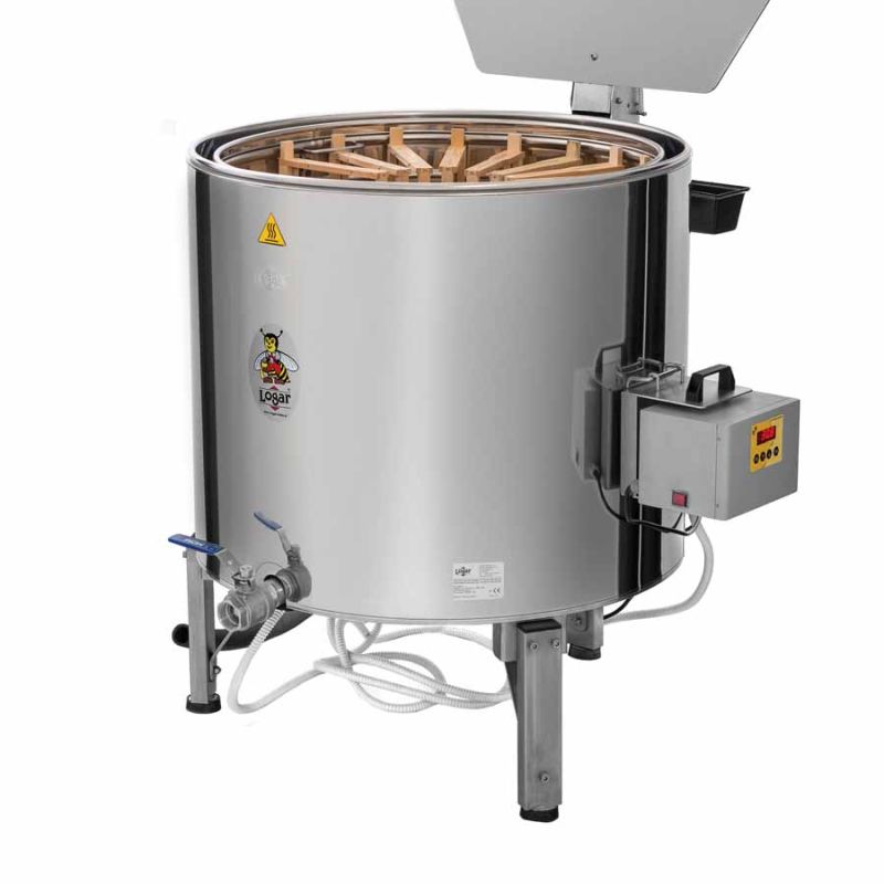 Een robuuste wascentrifuge van Logar die het snelle en efficiënte smelten van oude raten, uitgesneden raten, afdekwas of wasblokken door centrifugeren met stoom mogelijk maakt.
